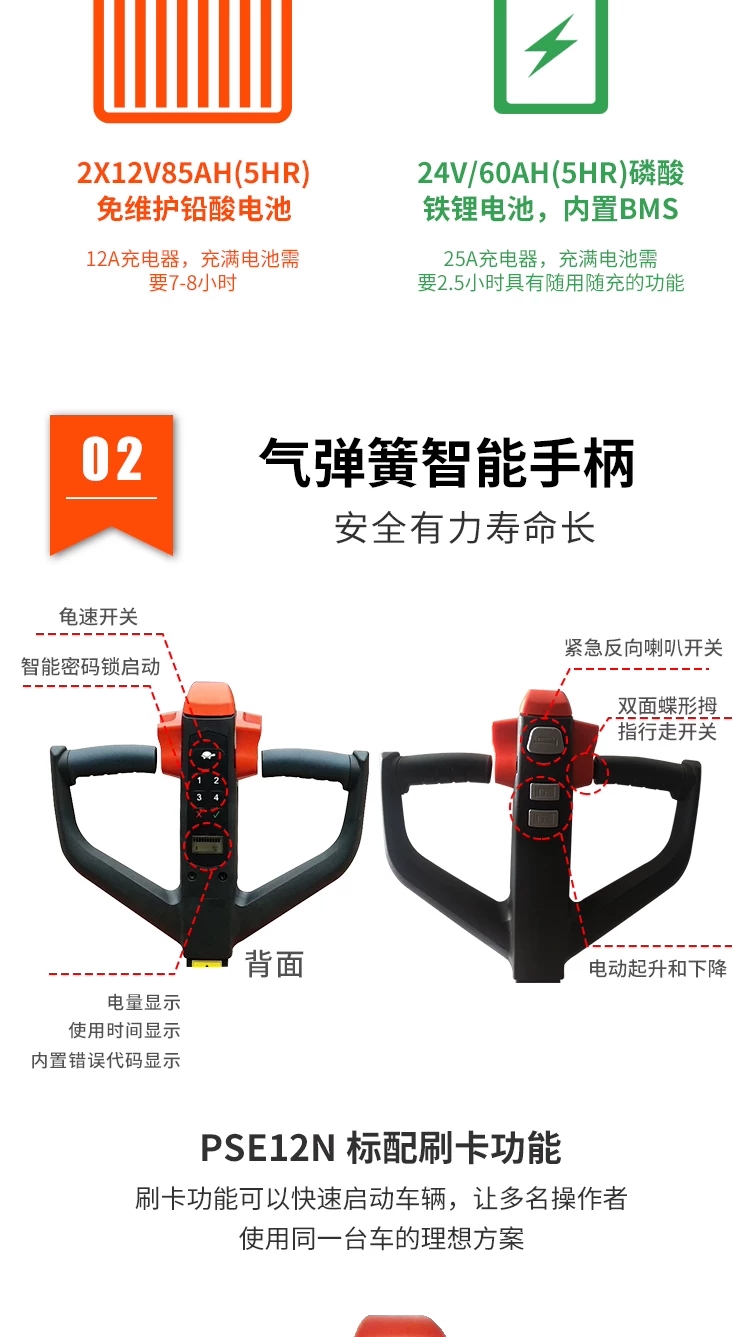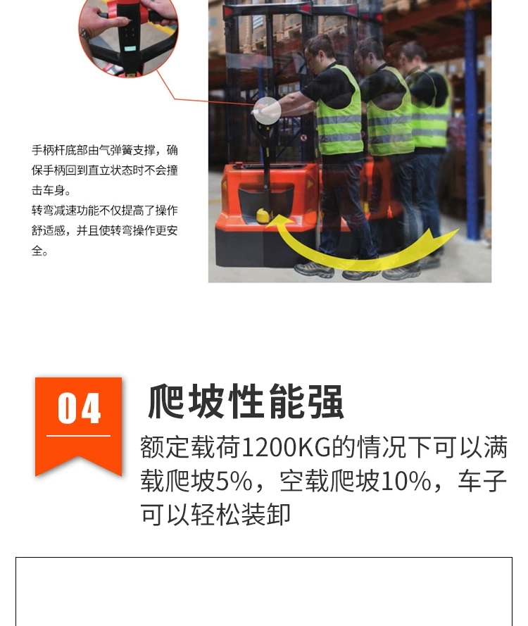 PSE12N/B是一款步行式電動堆垛車,額定載荷1200kg,堆垛高度1600mm-3600m
