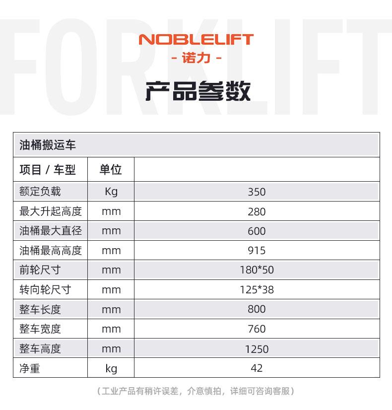 諾力叉車手動液壓油桶搬運車鐵桶