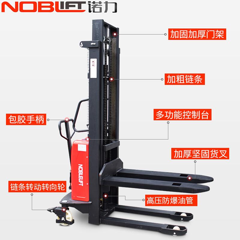 諾力電動(dòng)叉車半電動(dòng)堆高車1.5噸2噸3米半自動(dòng)托盤(pán)堆垛車升