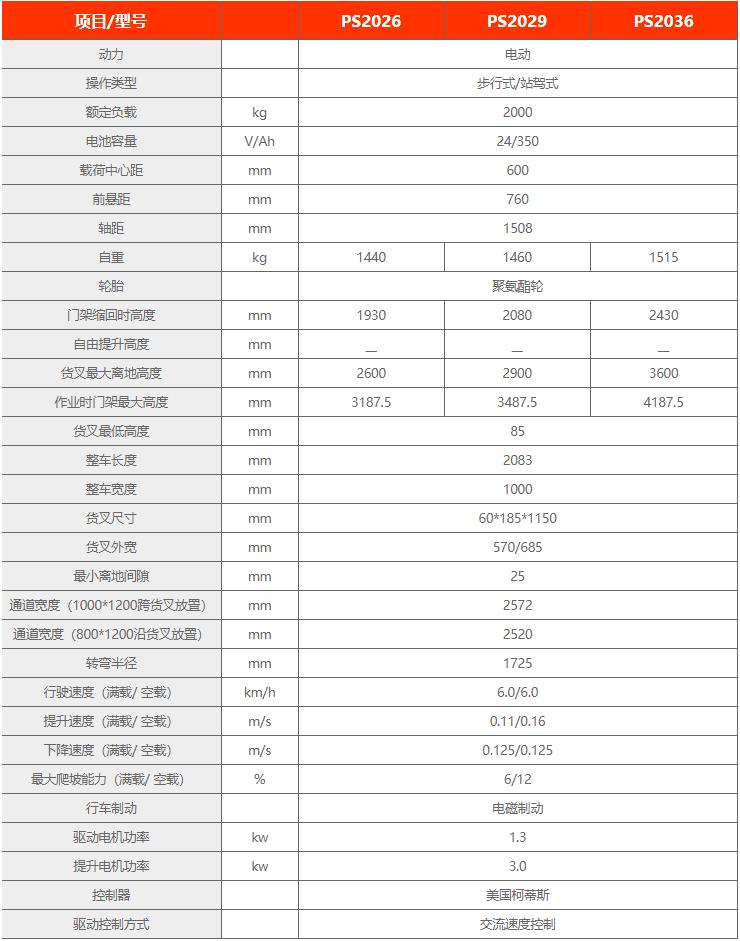 諾力電動(dòng)堆高車2噸PS20D報(bào)價(jià)表